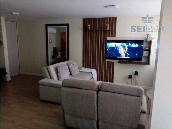 Apartamento en primer piso, lado sombra, área 90m², consta de balcón, sala, comedor, estudio, cocina integral, 3 habitaciones, 2 baños y garaje en sótano.